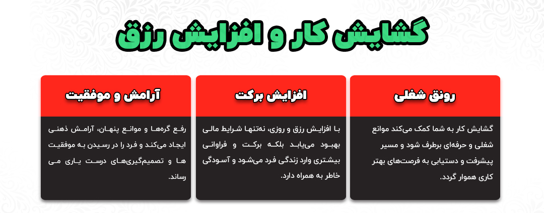 اگر در شغل یا کسبوکار خود به بنبست خوردهاید یا درآمدتان کاهش یافته، با طلسم گشایش کار و افزایش رزق، راههای بسته باز میشوند. این طلسمها مخصوص بازاریها، مغازهداران و کارمندان هستند.